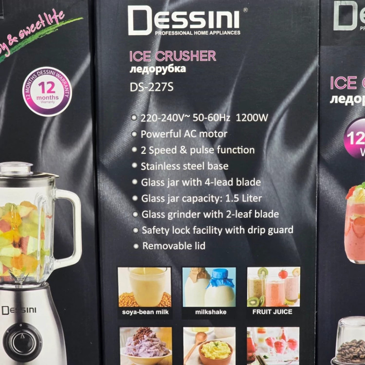 مخلوط کن و آسیاب دسینی مدل DS-227S ظرفیت ۱.۵ لیتر ۲ کاره با کاسه شیشه